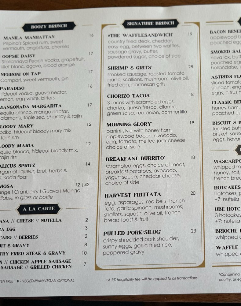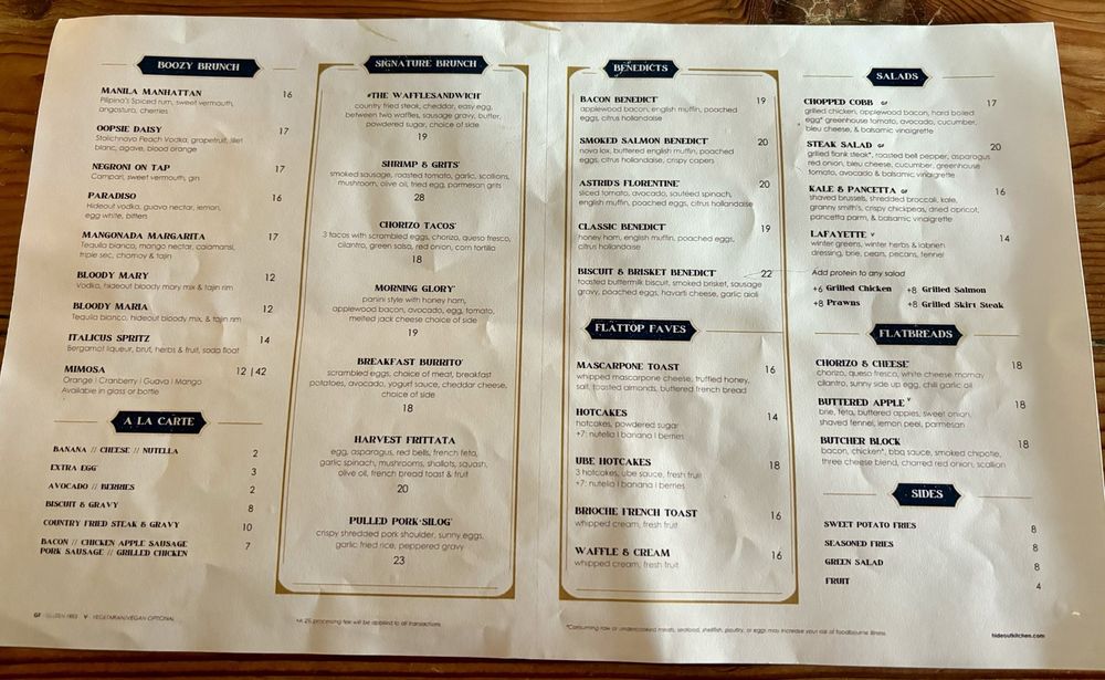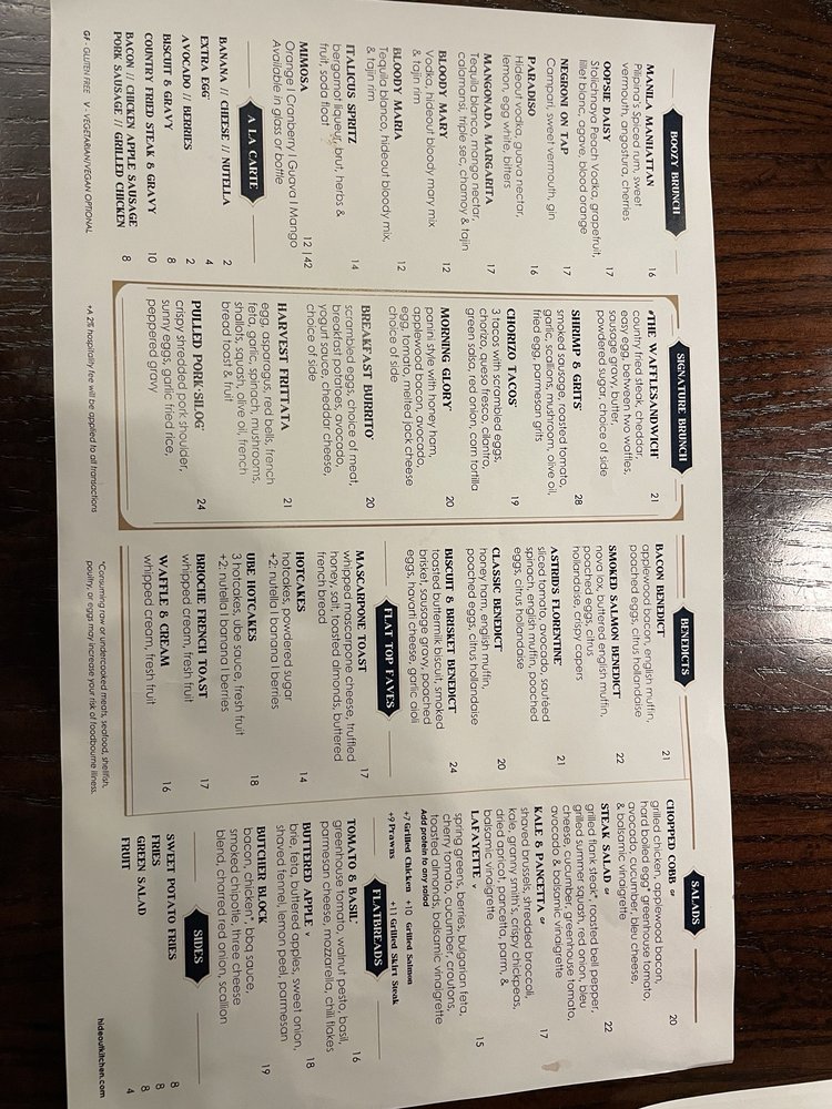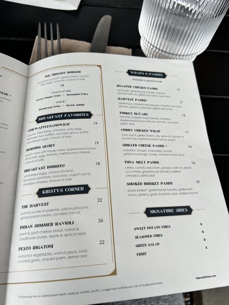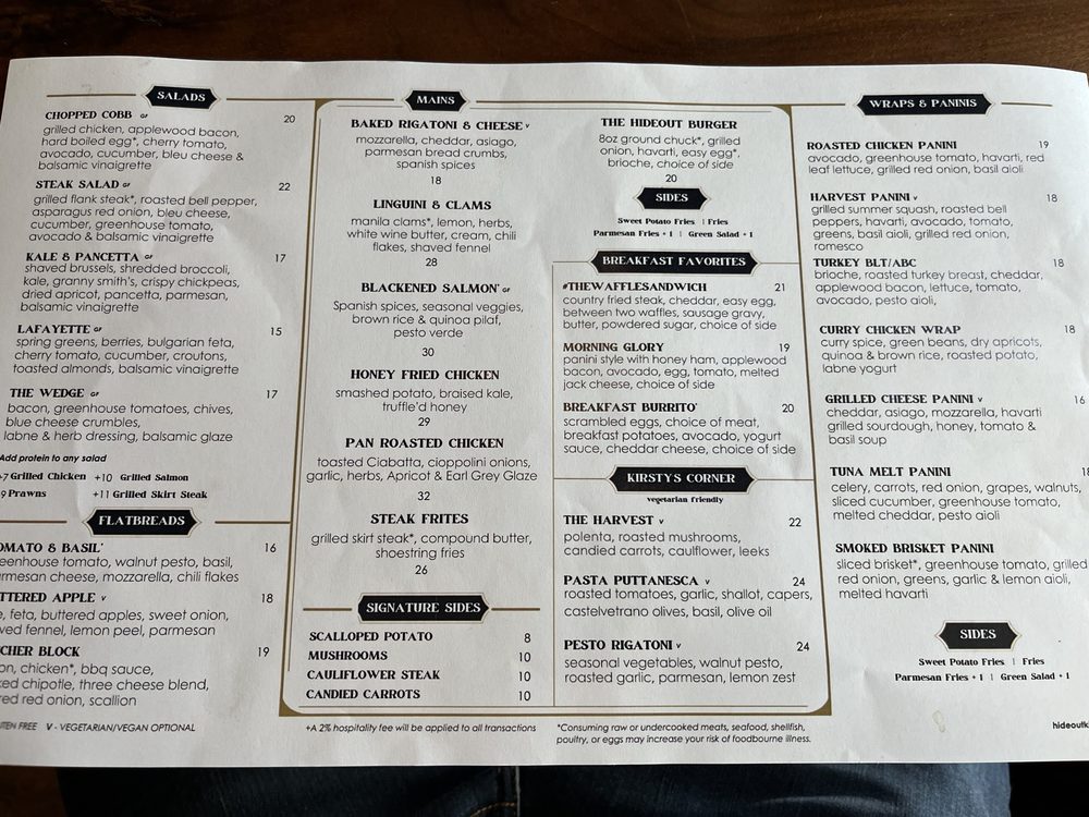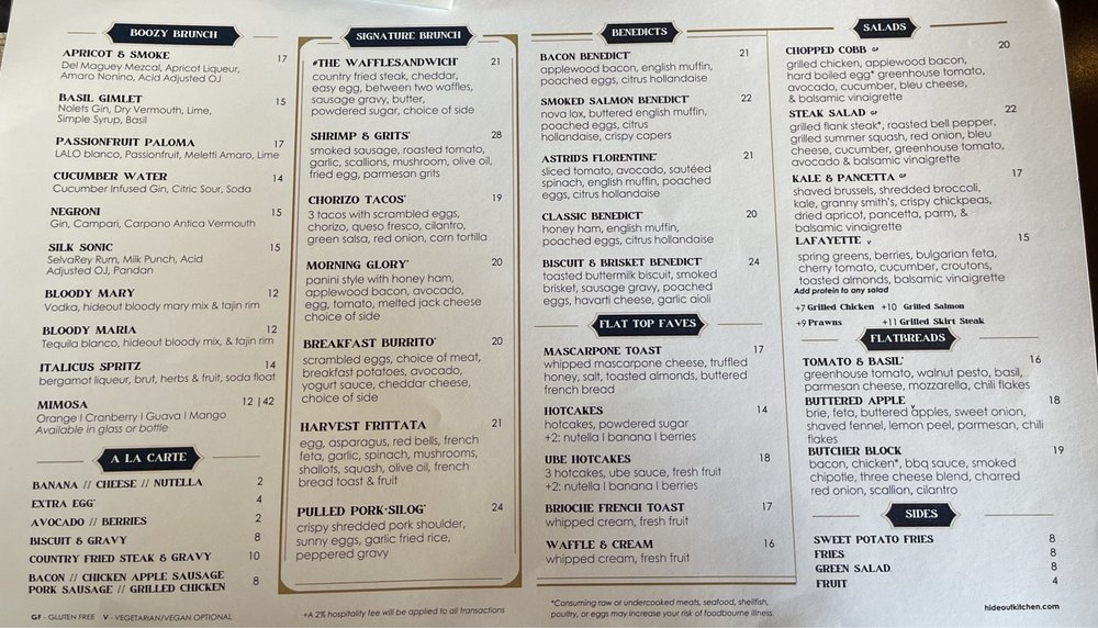 Introducing The Hideout Kitchen, a trendy and casual restaurant located in Lafayette, CA. Known for its diverse menu offerings, The Hideout Kitchen takes reservations and offers takeout, delivery, and outdoor seating. They provide vegan and vegetarian options, making it inclusive for all diners. With wheelchair accessibility, gender-neutral restrooms, and a military discount, the restaurant caters to a wide range of customers. The menu features breakfast, brunch, lunch, dinner, and dessert options, with dishes like classic eggs benedict, chorizo tacos, French toast, kale and pancetta salad, frittata, and more. The Hideout Kitchen promises an unforgettable dining experience with top-notch service and generous portion sizes. Don't miss out on their delicious meals and vibrant ambiance when you visit this restaurant.